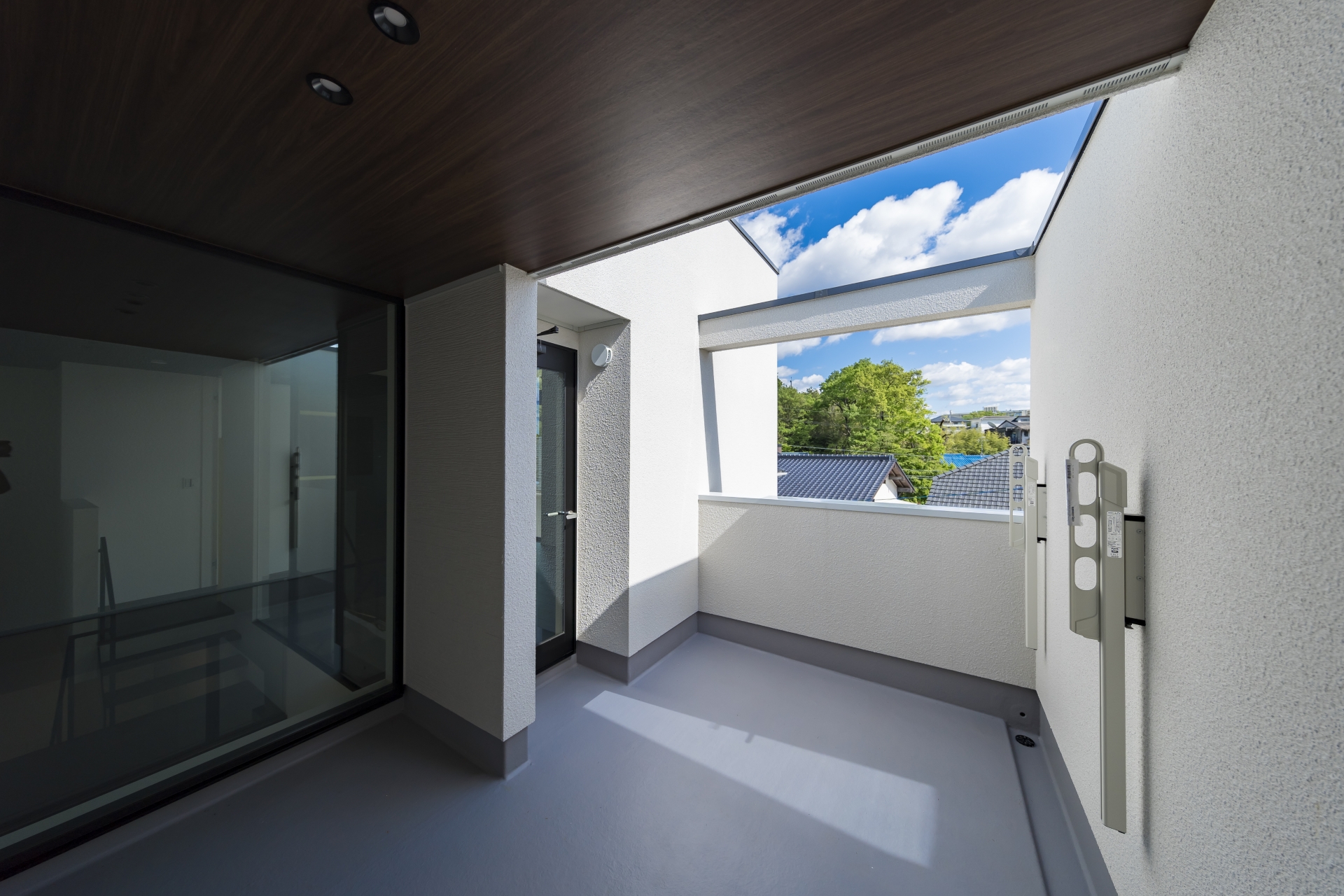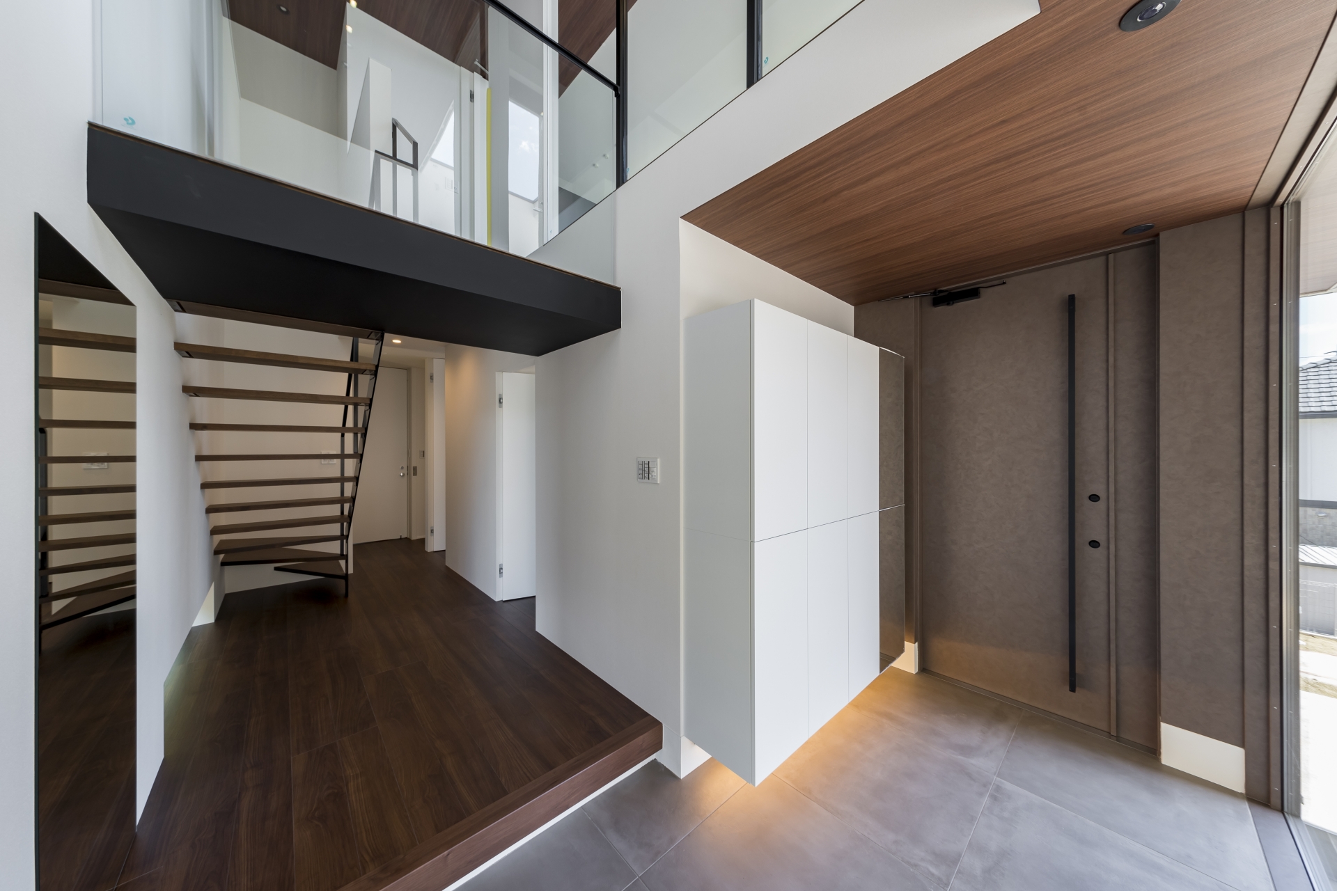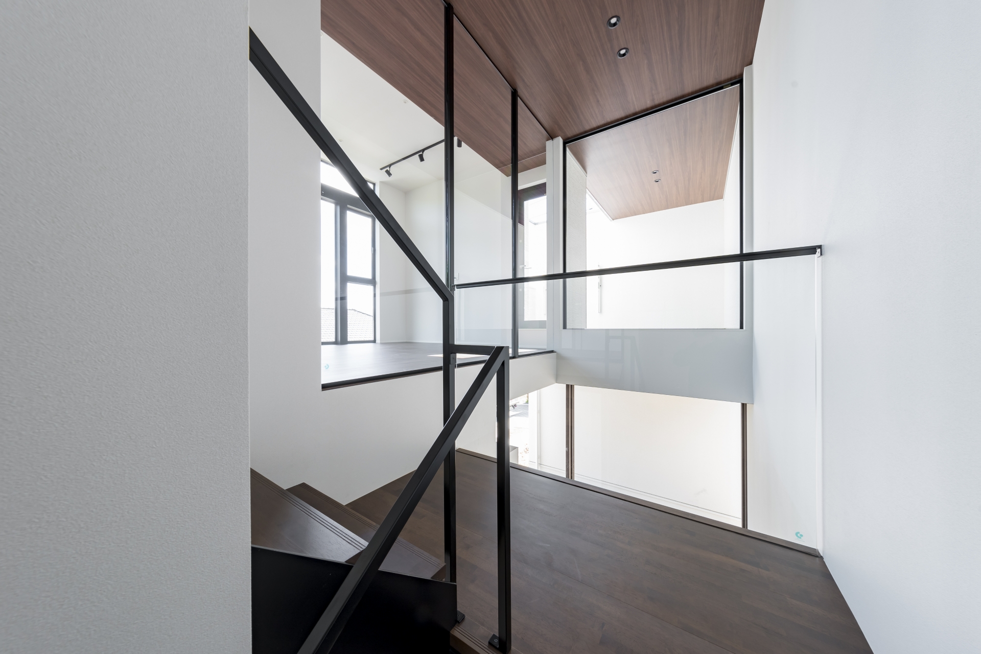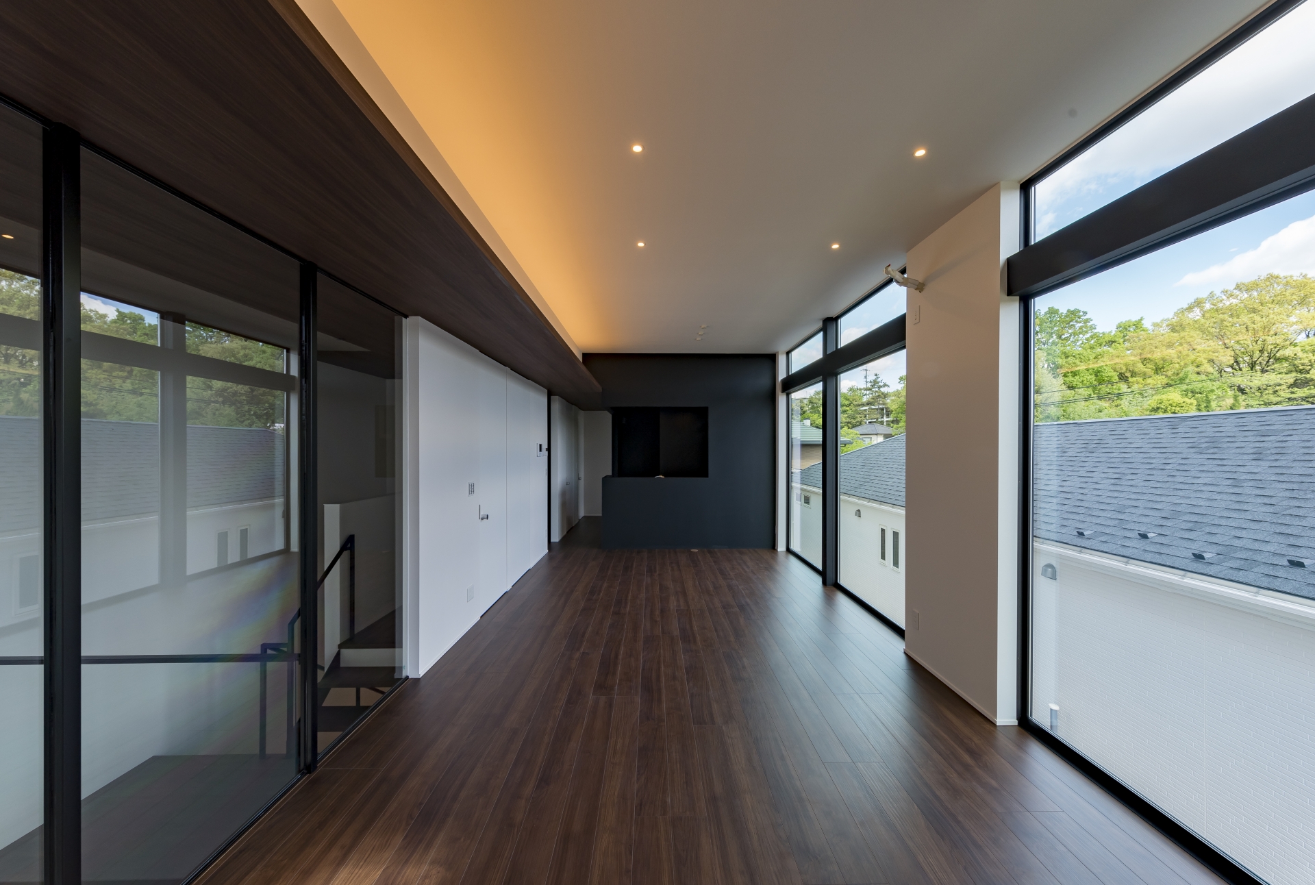 ガラス張りの2階リビングの家
