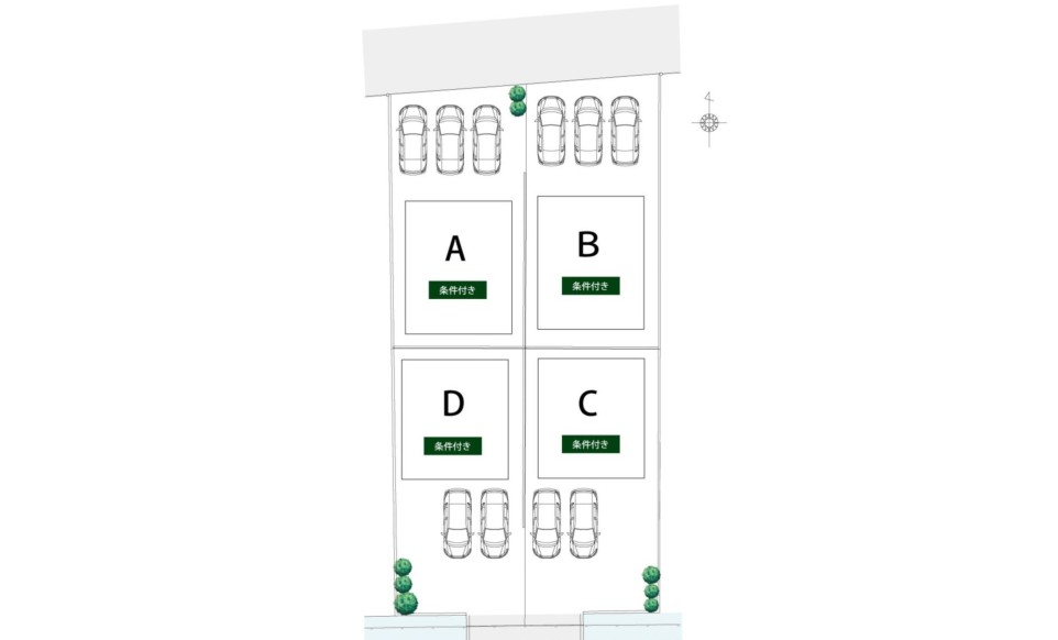 ・南向き2区画、北向き2区画の整形地