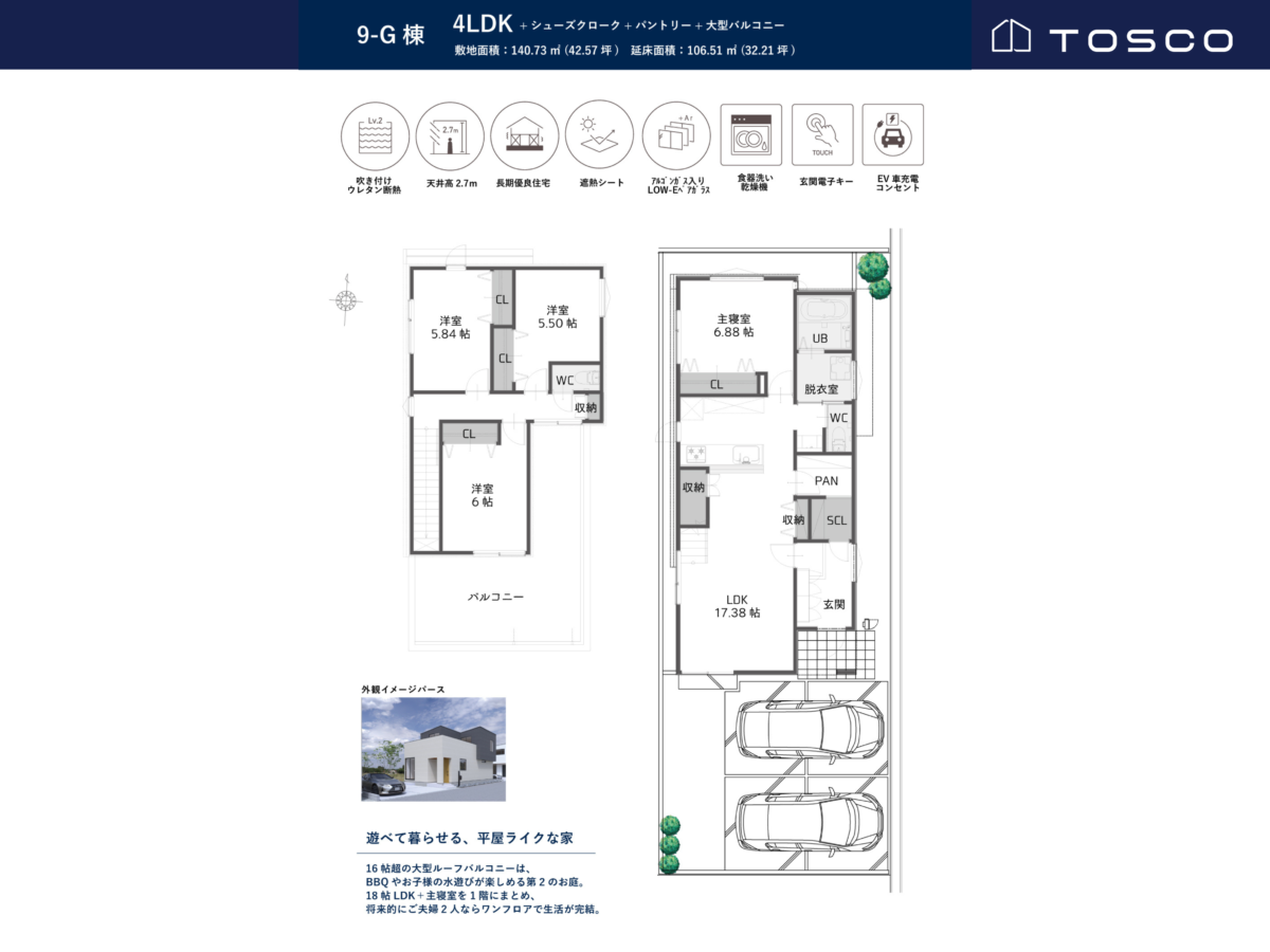 ・4LDKのゆとりある間取りに、前面道路6m以上の開放感