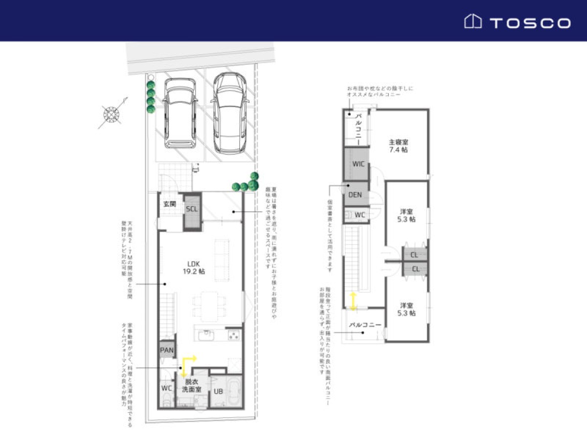TOSCOの分譲住宅は同じデザインがふたつと存在しません。設計士が一邸一邸、その土地に合うと考えられるデザインで描いているためです。見た目だけではなく、どのように機能するのか。TOSCOの住宅は暮らしに寄り添ったデザインであるように丁寧に創りあげています。